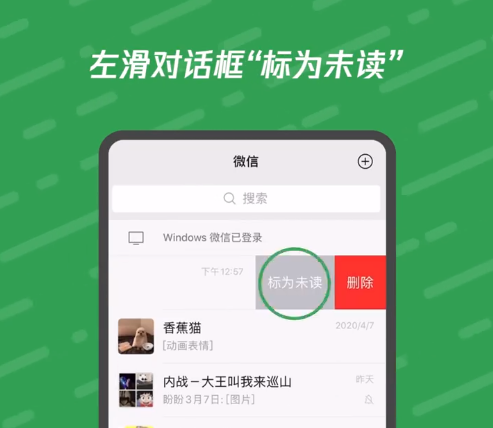 1、來不及回復(fù)的信息,左滑對話框“標(biāo)為未讀”