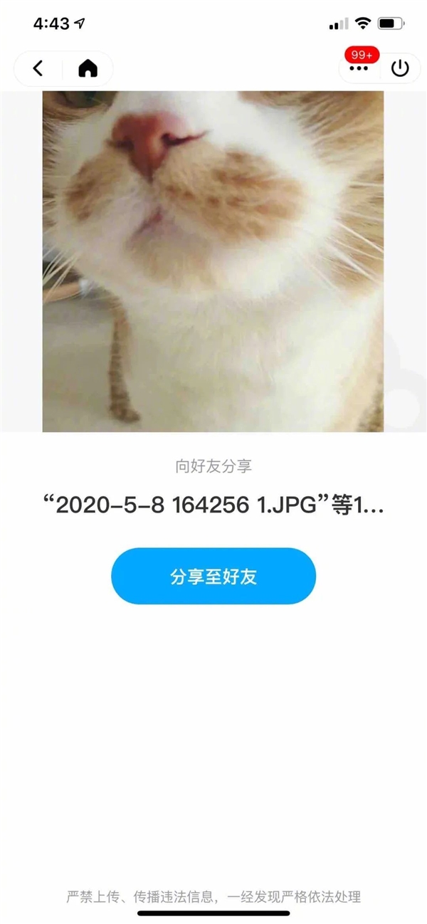 進行登錄授權(quán)后,即可進入自己的網(wǎng)盤QQ小程序主頁,選中自己想分享的文件給好友即可;