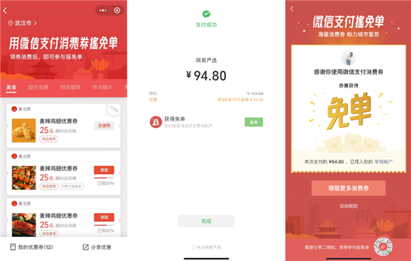 今天開始,微信支付搖免單正式上線。在“微信支付商家消費券”小程序領券并消費后,就可以獲得,最高可獲得200元的搖免單機會。