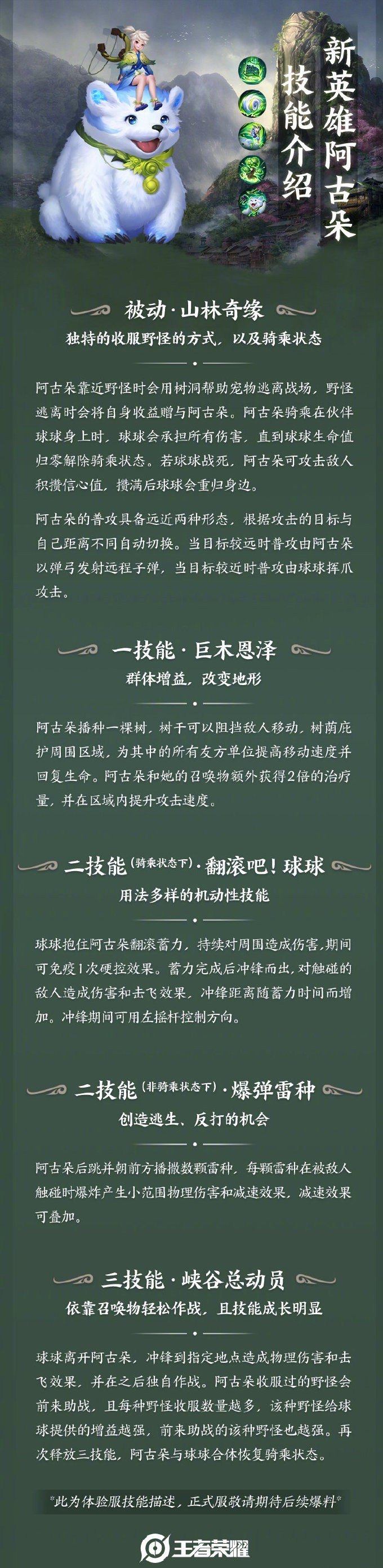 王者榮耀官方宣布,王者榮耀新英雄阿古朵體驗服爆料新鮮出爐,這位是來自三分之地蜀地山林的新英雄。