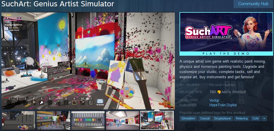 近日,模擬新游《SuchArt:天才藝術家模擬器》上架Steam商城頁面,該作將支持簡體中文。作為一款非常獨特的模擬新游,玩家可以隨心所欲模擬創(chuàng)作藝術。