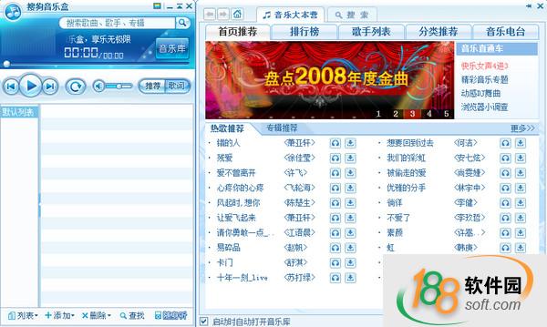 智能歌曲推薦播放你喜歡的歌曲,搜狗音樂盒能幫你發現同類的歌曲隨身聽功能簡單快捷地復制歌曲到隨身聽設備(支持iPod、iPhone、音樂手機及普通mp3播放器)桌面歌曲玲瓏歌詞舞動桌面,給你KTV般的感覺外觀選擇更多精彩皮膚,更多精美色調,隨心更換音樂電臺音樂電臺在線聽,搜狗音樂盒給你帶來無限音樂