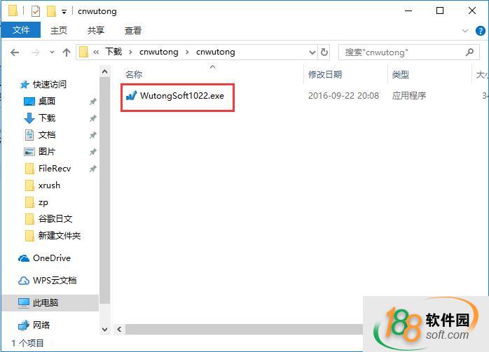 2、解壓縮后,找到目標文件夾,雙擊WutongSoft1022.exe打開安裝程序