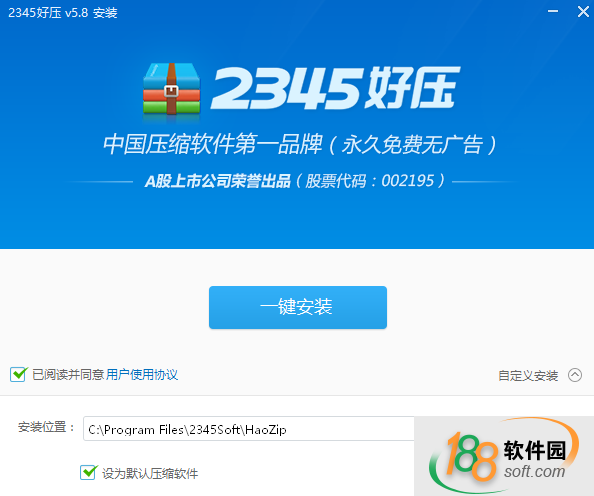 1、在188件園下載最新版的2345好壓安裝包,解壓縮后雙擊運行安裝程序。