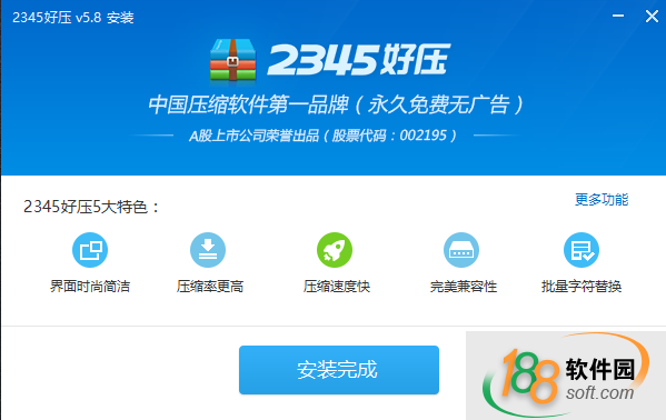 2345好壓(HaoZip)是2345旗下解壓縮軟件,是一款功能強大的文件壓縮解壓縮軟件,是完全免費的新一代壓縮軟件,好壓相比其它壓縮軟件具有占用更少的系統資,更好的兼容性,壓縮率更高的優點!2345好壓軟件對所有個人和企業用戶永久免費!需要下載使用好壓2345軟件下載的盡在188軟件園下載站進行下載。