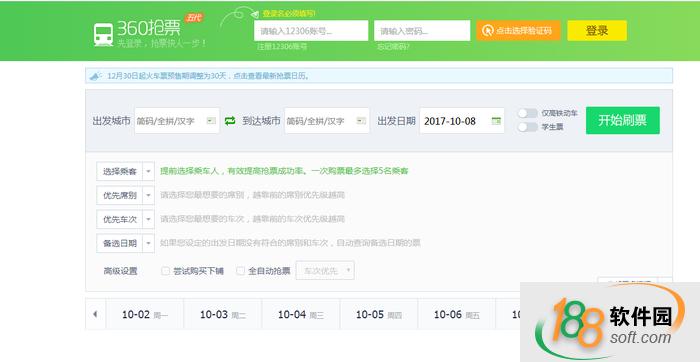 及時提醒,信188765.息自動填寫,360搶票王五代就是快人一步