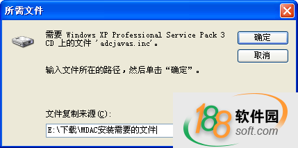 如果提示需要adcjavas.inc,handler.reg,sqlsoldb.chm等文件,請把目錄指向“MDAC安裝需要的文件”文件夾。