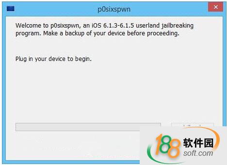 1.打開p0sixspwn,連接設備至電腦,等待軟件識別設備完成。