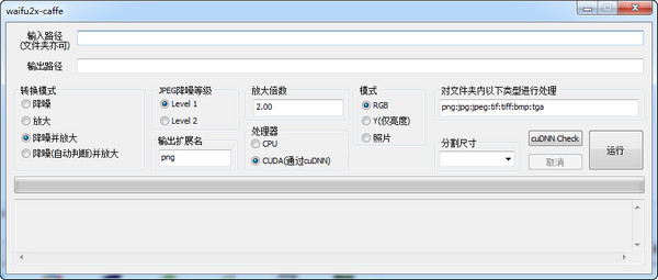 Waifu×2的菜單很簡單,因為功能單一,所以操作起來并不復雜,選擇要放大的圖片,然后選擇轉換質量和放大倍數,然后點擊運行即可,放大后的圖片直接會出現在原有圖片的文件夾中。