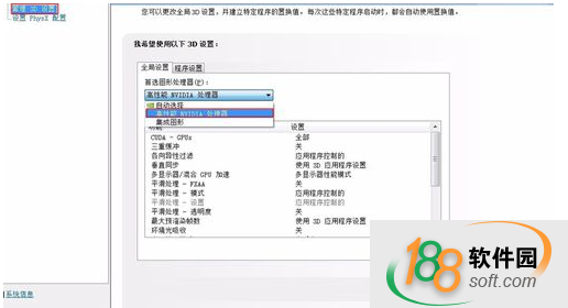 在第二項管理3D設置里面將獨顯設置為優先使用