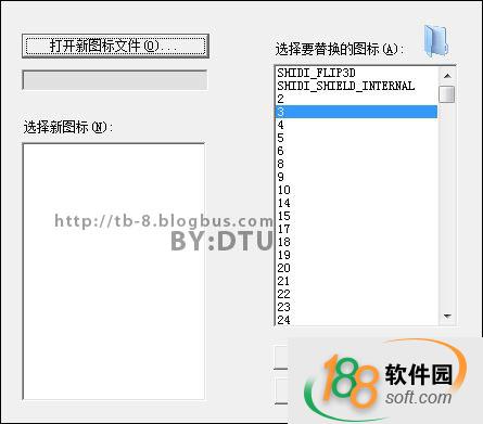 9、彈出了個對話框(替換圖標與.........),讓你選擇你要替換的圖標(ico文件),點擊左上角的"打開新圖標文件(0)..."