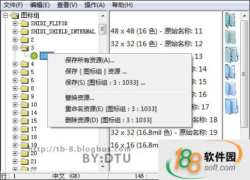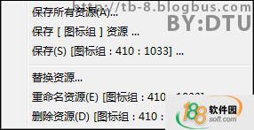2、提取(保存) 資源為文件 (*.res) 格式,可作為二進制,或作為反編譯過的資源腳本或圖像。