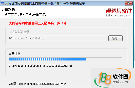 1、在188軟件園下載大同證券V6下載,下載完成后解壓軟件包,雙擊“dt_v6_sp_pc.exe”;