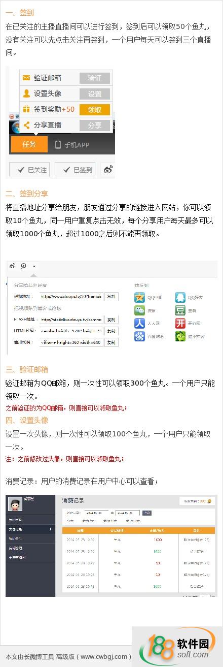 分享:1、先分享視頻地址給好友,2、好友點擊進入“斗魚網(wǎng)站”3、分享成功可以領取魚丸啦!您每邀請一個好友進入就可以獲得10個魚丸哦(每個好友只記一次哦)
