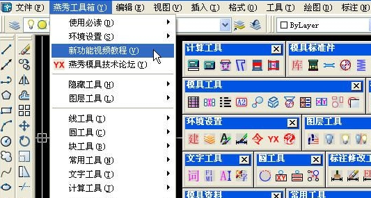 在沒有出現燕秀工具箱的CAD里面手動加載的燕秀工具箱,如果不知手動加載安裝請看燕秀工具箱的幫助里面的如何安裝。