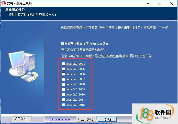 8、勾選電腦上已經安裝的AutoCAD對應版本,然后點擊“下一步”