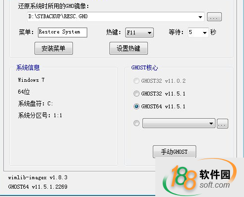 3、可自定義GHOST核心版(只在Windows/PE中有效,在DOS中只有11.5.1版)。