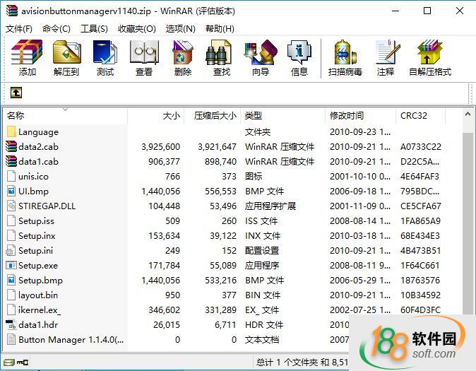1、從188軟件園下載虹光button manager軟件包