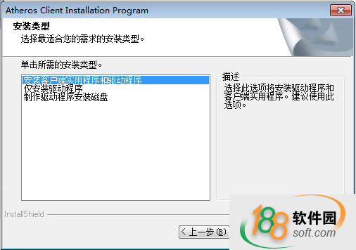 4、選擇Atheros AR5007EG 驅(qū)動安裝類型,然后點擊下一步;