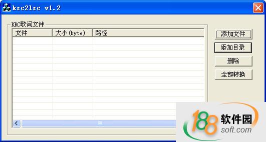 1、下載解壓文件,找到krc2lrc.exe雙擊打開該文件,界面功能如圖所示,點擊添加文件,選擇需要操作的項目