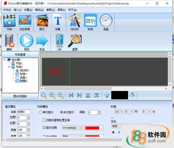 最后就可以插入動態背景、節目、圖文、字幕、時鐘、表盤等內容啦。