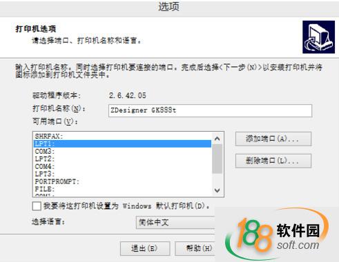 6、制造商選擇“ZDesigner”,打印機(jī)選擇“ZDesigner GK888cn”。注意,這里一定不能選擇帶“ZPL”或“EPL”的,否則可能會導(dǎo)致不能打印。這也是大部分客戶遇到的問題,千萬要注意。選擇好后,點(diǎn)擊“下一步”
