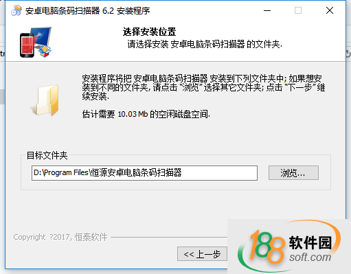 3、選擇恒源安卓電腦條碼掃描器安裝位置