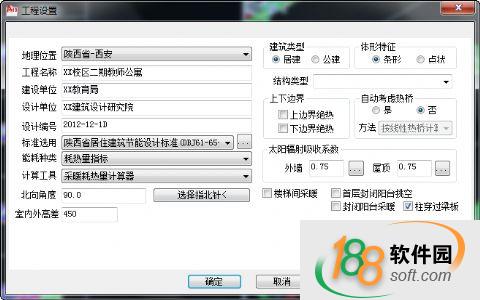 計算熱工模型的體形系數、窗墻比、圍護結構熱工性能等參數。