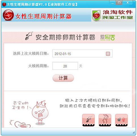 2.簡(jiǎn)單實(shí)用浪淘女性安全期計(jì)算器,設(shè)置好月經(jīng)周期,點(diǎn)擊選擇軟件中女性月經(jīng)第一天日期,軟件自動(dòng)提示出安全期、危險(xiǎn)期、和月經(jīng)期。一目了然,是廣大女性的必備軟件。