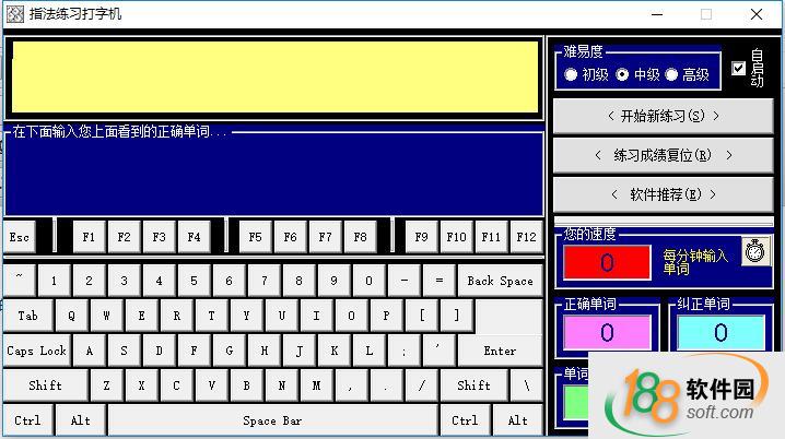4、游戲共10級難度,既可循序漸進的學習,又可用于打字水平的測定。