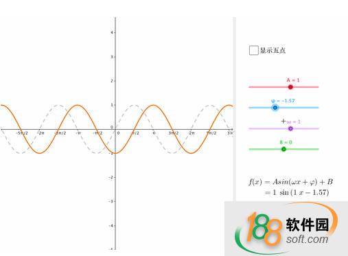 2、高中數(shù)學(xué)課件示例:三角函數(shù)的圖像:拖動(dòng)滑條,自由改變參數(shù)值,動(dòng)態(tài)演示連續(xù)的變化效果,直觀展示結(jié)論和思想過程