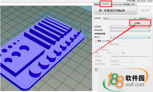 1、在3D進行切片之前,需要配置一下文件,點擊“切片軟件”-“配置”,進行參數設置