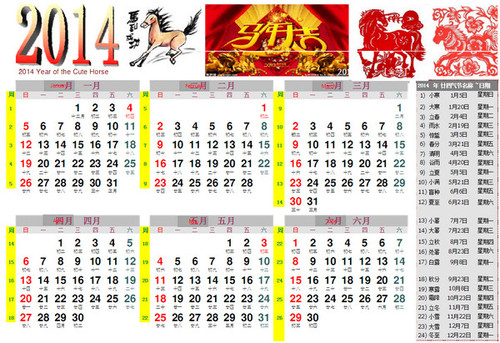 2014日歷表是將公元2014年全年日歷制作成的Excel表格,用戶能夠更加清晰的看到每天公歷、農歷和節日信息,可以直接打印出來使用,方便用戶進行日程安排,需要的朋友快來下載吧。