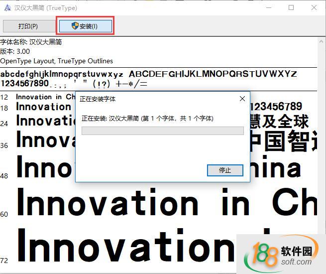 1、從188軟件園下載漢儀大黑簡字體壓縮包