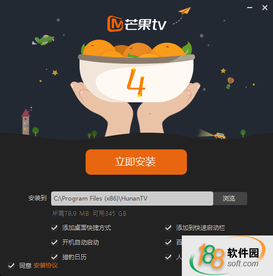 1、從188軟件園下載最新版芒果TV安裝包后,雙擊安裝包進行安裝。