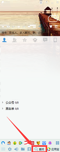 首先需要登錄電腦版QQ,然后我們可以看到登錄好的QQ界面下方有“查找”字樣,并點擊查找
