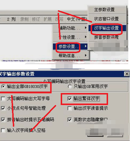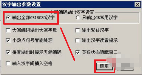 1、打開軟件,先進行“參數設置”>>“漢字輸出設置”;勾選“輸出全部GB18030漢字”、“輸出繁體漢字”。