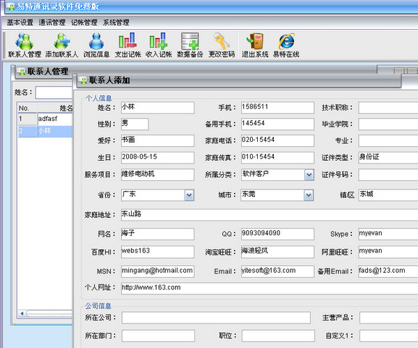易特通訊錄軟件是一款聯系人信息管理軟件,易特通訊錄功能非常簡單實用,擁有聯系人分類,省份城市分類等。