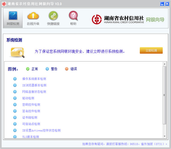 湖南省農(nóng)村信用社網(wǎng)銀向?qū)呛鲜∞r(nóng)村信用社推出網(wǎng)銀助手工具,可以檢測(cè)環(huán)境,并修復(fù)安全問(wèn)題,為你的網(wǎng)銀安全提供保護(hù),有需要的趕快下載吧! 使用方法 運(yùn)行網(wǎng)銀向?qū)Ш螅鋵⒆詣?dòng)為您完成驅(qū)動(dòng)、安全控件