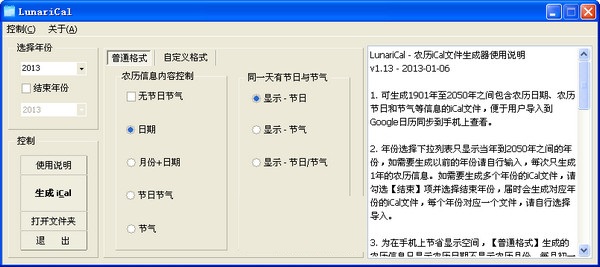 LunariCal是一款農歷 ICAL 文件生成工具,功能簡單卻相當實用,生成的 ICAL 文件可以導入 Google 日歷等其他日歷管理工具; LunariCal 支持“日期&rdquo