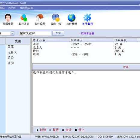 古今中外詩(shī)詞總匯是一款絕對(duì)強(qiáng)大、絕對(duì)齊全、絕對(duì)完備、絕對(duì)精品的實(shí)用軟件。軟件純綠色、無 插件,本軟件