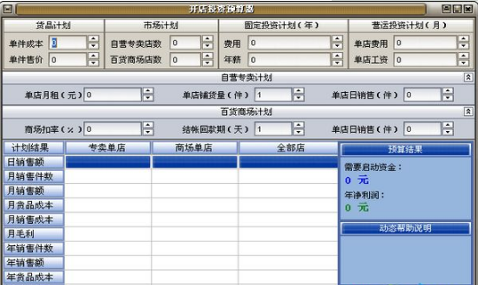 開店預算關鍵是成本分析,開店投資預算器幫您輕松搞定這一切!利用經濟學中邊際成本原理,對固定投資下的網點擴張開店,進行投資預算,及獲利分析的計算工具。尤其適合專賣店與商場雙重模式下的時尚零售分銷行業的運