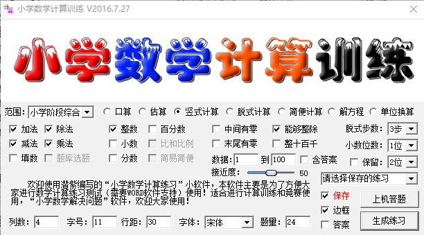 小學(xué)數(shù)學(xué)算術(shù)運(yùn)算練習(xí)軟件 0.93