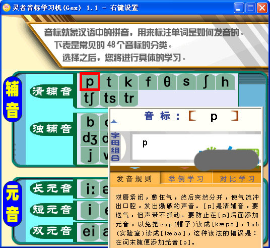 靈者音標學習機是一款來自英語國際音標學習工具,它提供 48 個常用音標的讀音和發音嘴型文字說明以及每個音標所對應的詞組。滑過或點擊音標可以發出其讀音或彈出音標信息(右鍵可設置)點擊左邊的“