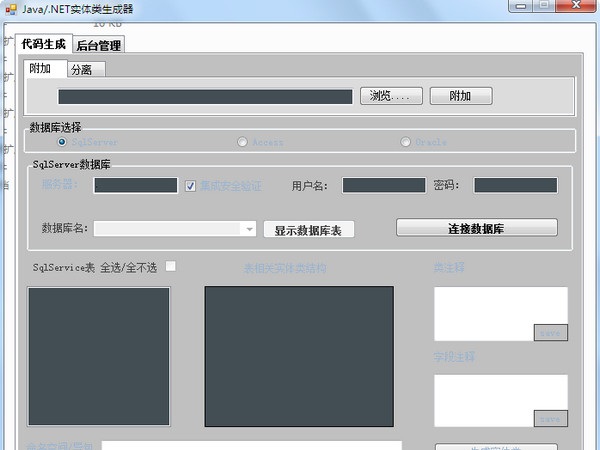 java/.net實體類生成器,可以自動生成從sqlserver數據庫中生成java 和.net的實體類 解決因為VS2008里自帶的代碼重構功能中的封裝字段,一次只能封裝一個字段,一定程序造成程序員