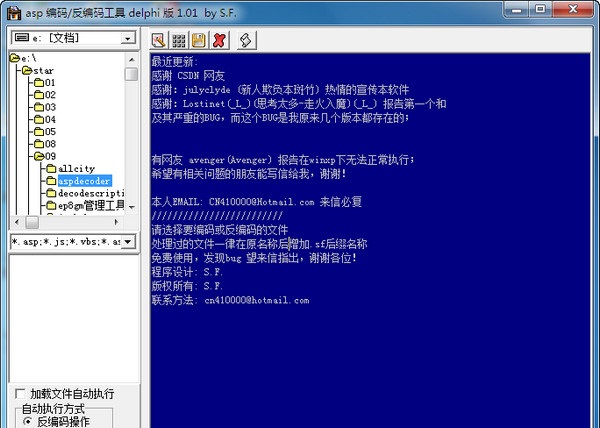 一套加密ASP代碼HTML代碼等代碼的工具,使自己的代碼受保護。 處理過的文件一律在原名稱后增加.sf后綴名稱