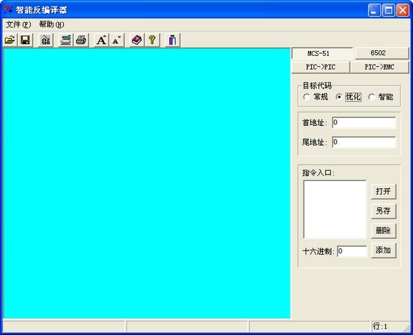 智能反編譯器能自動區(qū)分代碼段和數(shù)據(jù)段,使反編譯出的源程序幾乎不做任何修改即可進行再編譯,使您更快捷地分析程序, 及修改再編譯等。 PIC->PIC 1、對于PIC16C54,