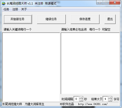 長尾詞挖掘大師是一款經典的長尾詞挖掘工具,是建立長尾詞關鍵詞庫利器,每次任務最多可以挖據1萬詞 ,總數大于300萬詞,有需要的朋友趕快下載吧! 長尾詞挖掘大師使用方法 解壓壓縮文