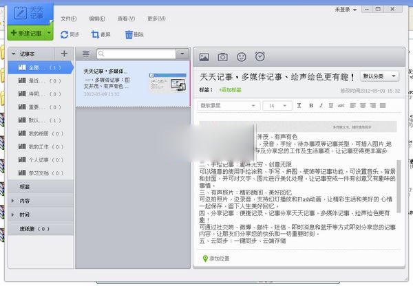 天天記事(原DSM記事本),伴隨您一生的云記事本!華為公司精心打造的多媒體云筆記應(yīng)用,擁有業(yè)界領(lǐng)先的云存儲技術(shù),數(shù)據(jù)永久安全。...