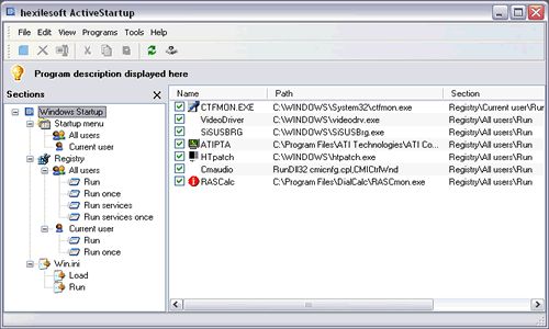ActiveStartup允許你管理注冊表、win.ini、啟動菜單里的自動啟動程序。